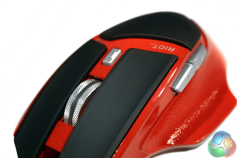 This being a seriously ergonomic mouse, the sides are rather distinctive. The left features a deep thumb rest and a texturing to the red plastic to help with grip during perspiring gaming moments. There are also a couple of typical side buttons, offering forward/back functionality in-browser at default.