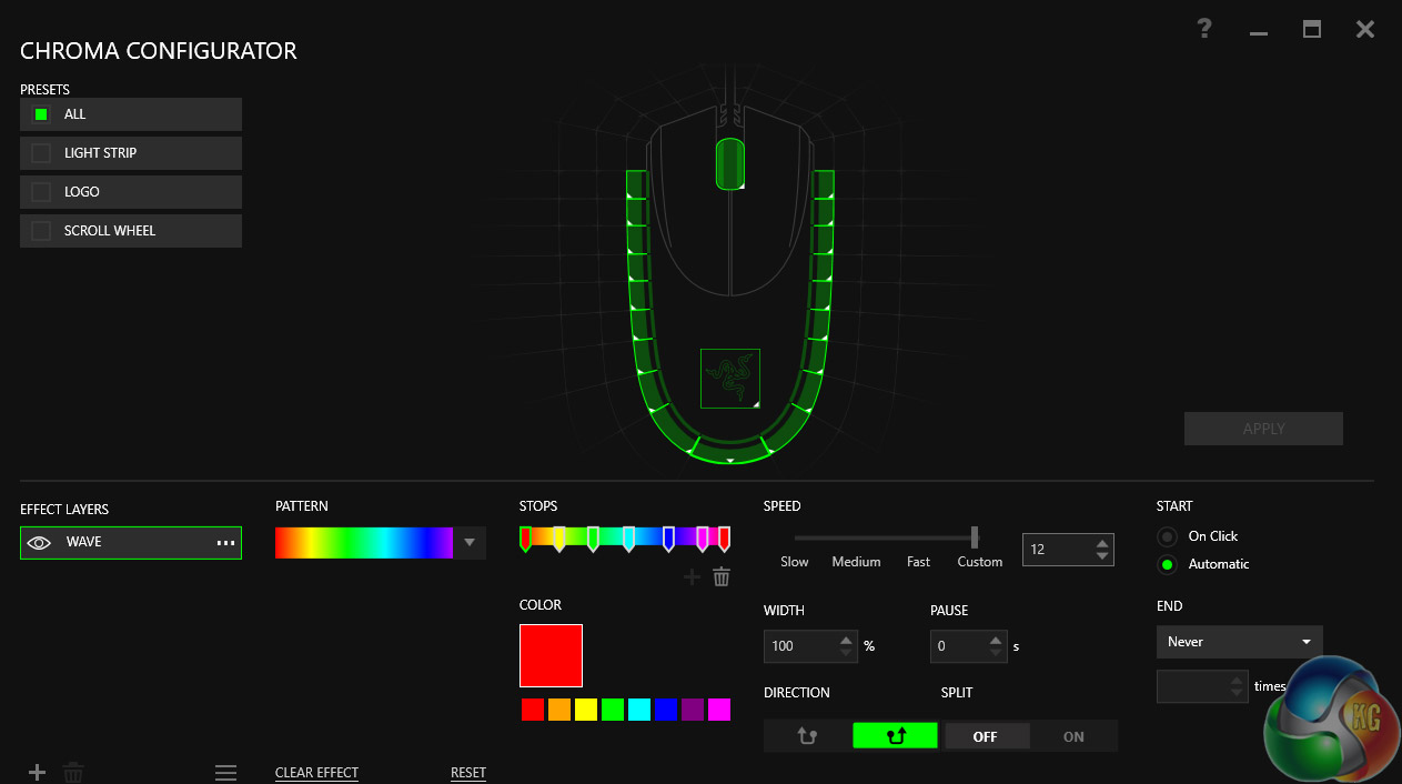 The Razer Synapse software is strong as ever, with a number of options for macros, setting tweaks and profile storage. The Chroma lighting configurator is also excellent and even allows for the use of third party applications which can make it do all sorts of fun things.