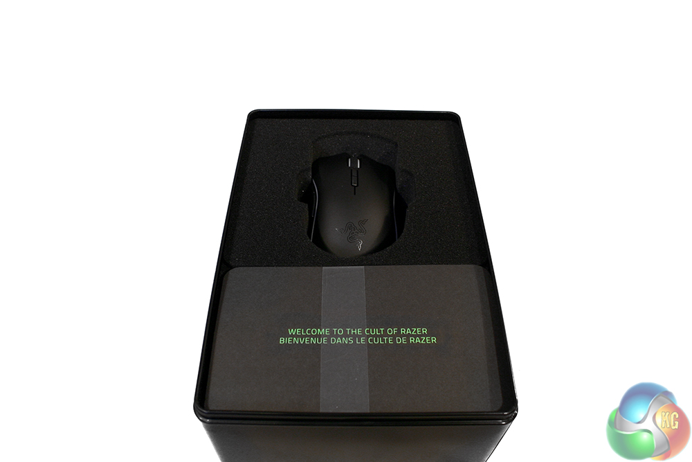 Beneath which you actually get to see the mouse for the first time – part of me suspects that like Apple products, Razer has designed the packaging to increase anticipation – which is held securely in foam padding, along with another section for the accessories, located underneath the manual.