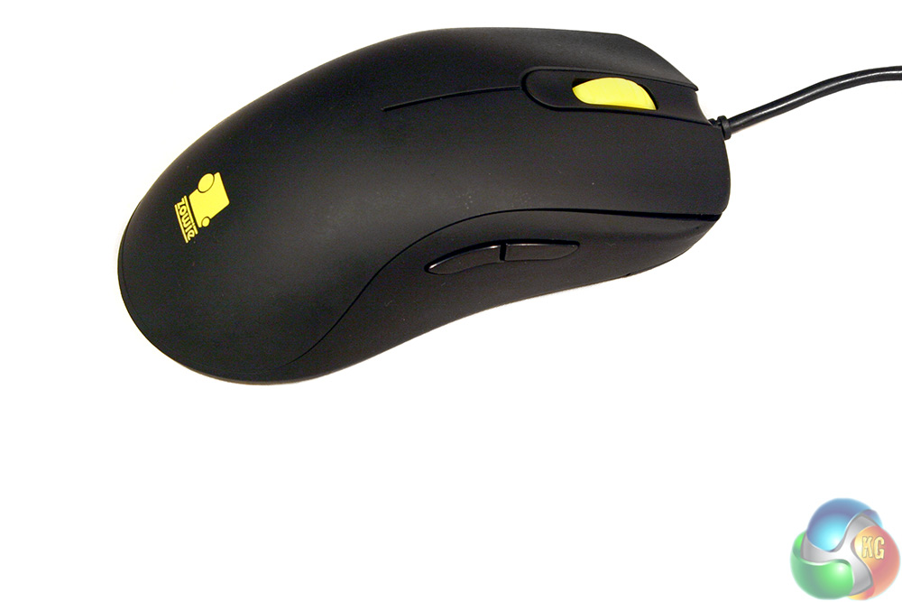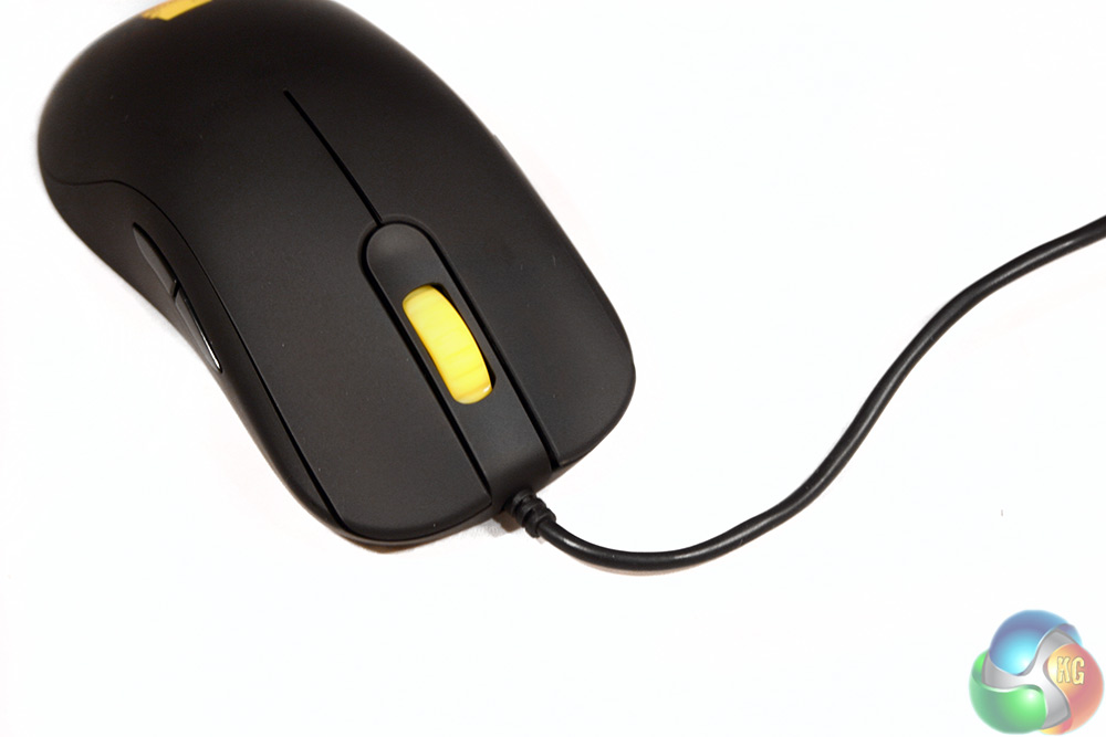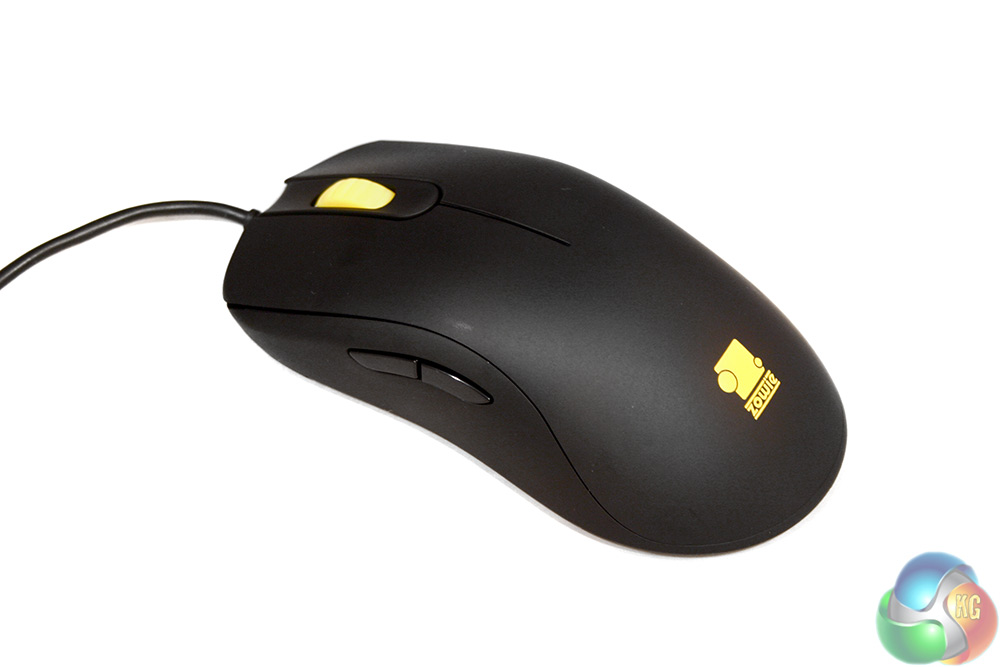 The only styling that breaks up the uniform black is a yellow Zowie logo at the rear and a bright yellow scroll wheel at the front.