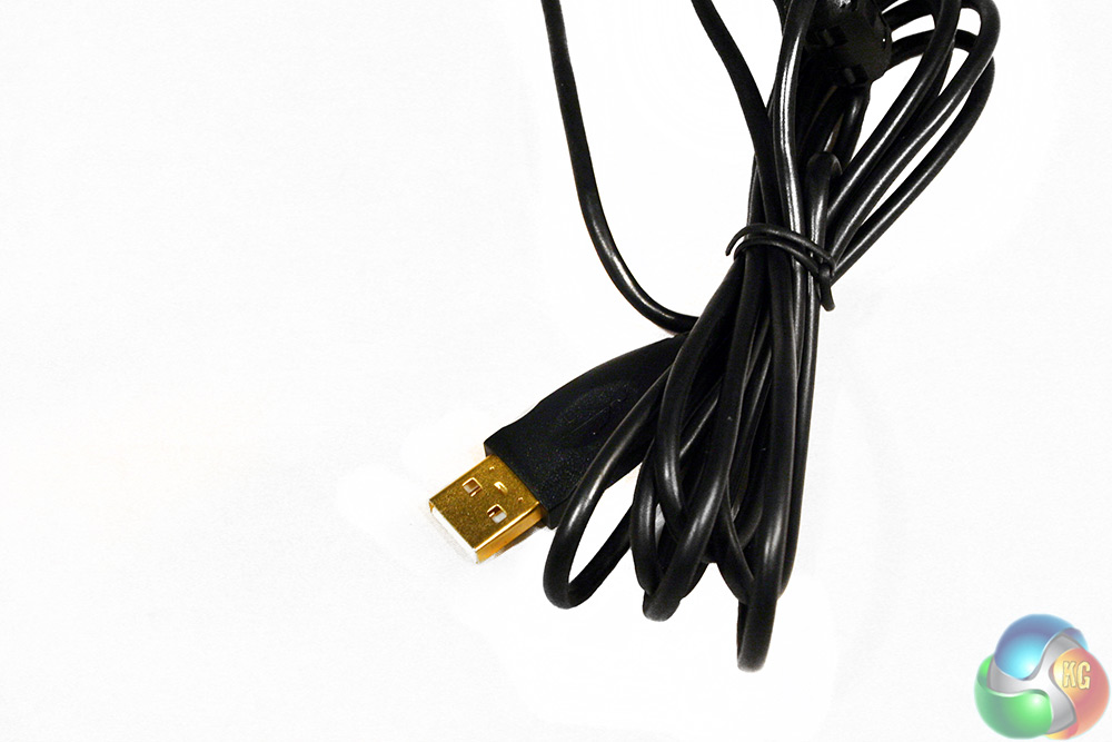 The cable features a gold plated connector, but the cable is just standard rubber, no braiding.
