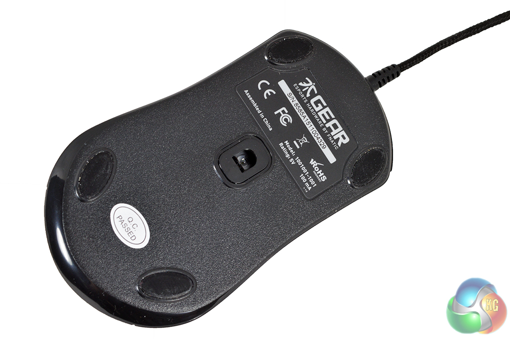 Underneath the mouse you will find the Pixart 3310 optical sensor in use here. This sensor can also be found in other popular mice like the Steelseries Rival and the Mionix Avior 7000.