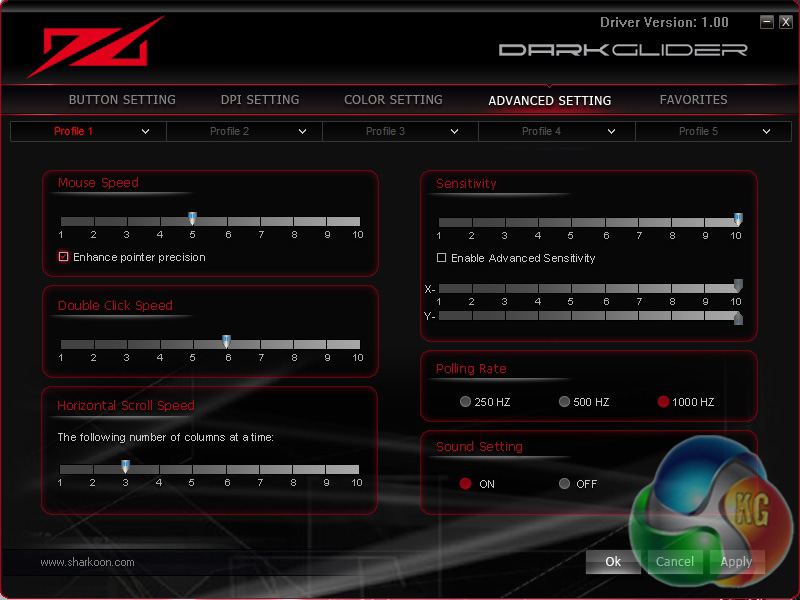 Overall, the DarkGlider software driver is easy enough to work with. I had no problems with performance, nor did I have any troubles finding my way around as everything is laid out nicely. There are plenty of options to keep most happy.