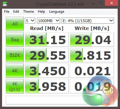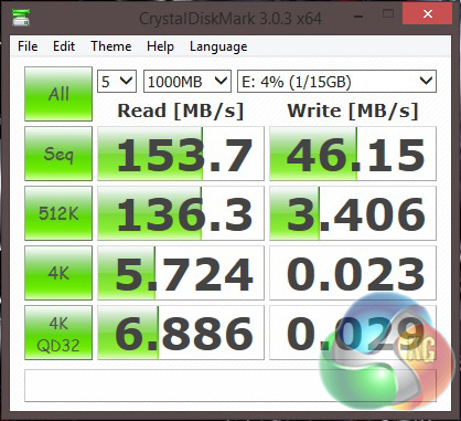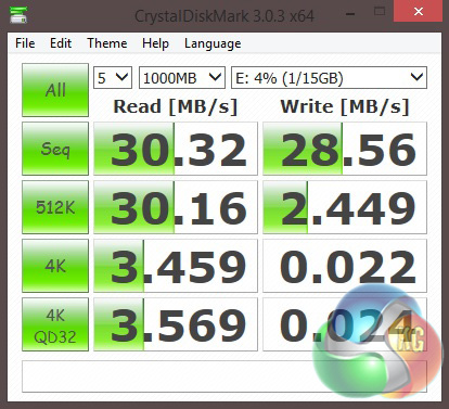Sequential read and write speeds almost mirror what we saw in our ‘real world' performance tests. The USB drive has excellent read speeds and write speeds are faster than the 30 MB/s advertised on the packaging.