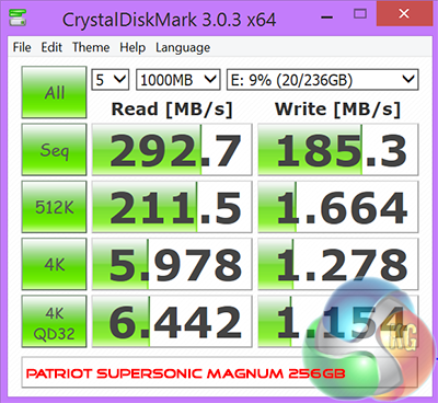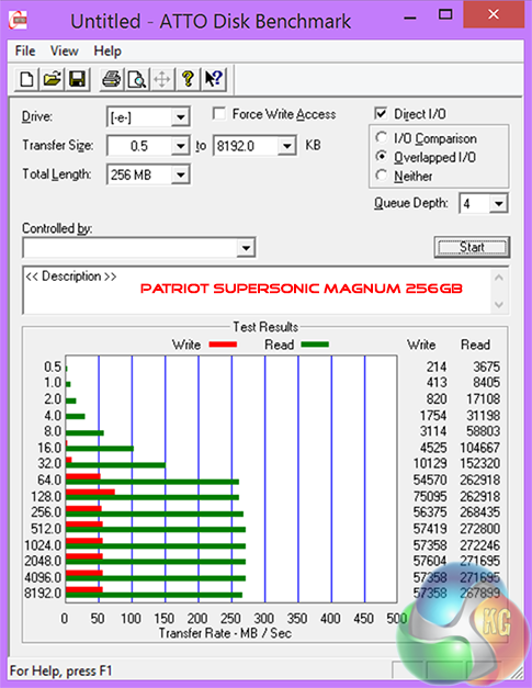 4K and 4K QD32 performance is also exceptionally high for a USB 3.0 flash drive. Compare against the older Patriot Supersonic Magnum 256Gb drive and you can see the gains achieved by using a fully fledged Solid State Drive controller.