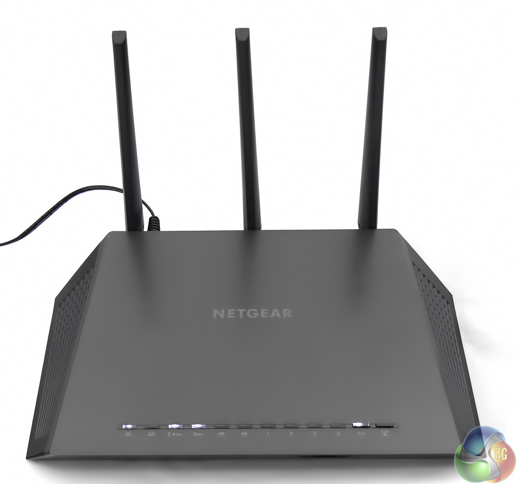 Once the R7000 is powered up it has a bit of a think for a few seconds and then settles down with a series of pale blue activity LEDS. You'll have to look quite closely in the photo to see the lights as they aren't especially bright, although you'll have no problem seeing them when you stand close to the router.