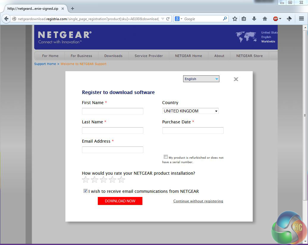 In the case of the Netgear A6100 USB adapter you don't need to bother as the only Windows 7 driver on the Netgear website is the initial release with a Beta drive for Window 8/8.1. Netgear would like its customers to register before they download drivers, however you can proceed without any of that nonsense if you simply click the ‘Continue without registering' link.