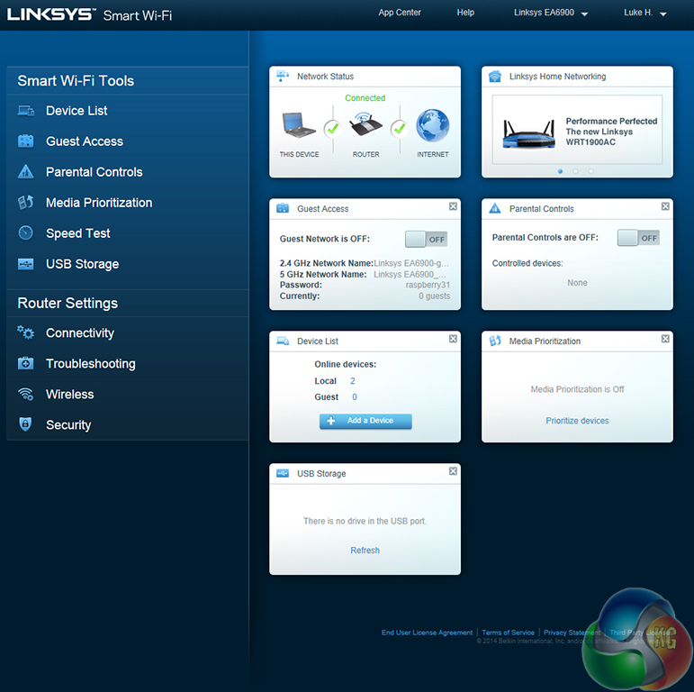 Overall, I have been impressed by Linksys' Smart Wi-Fi software implementation for the EA6900 router. The browser- or mobile device-based application gives users a high level of control over their network. Adjustments can be made and information can be viewed when one isn't even in the same city as the home network.