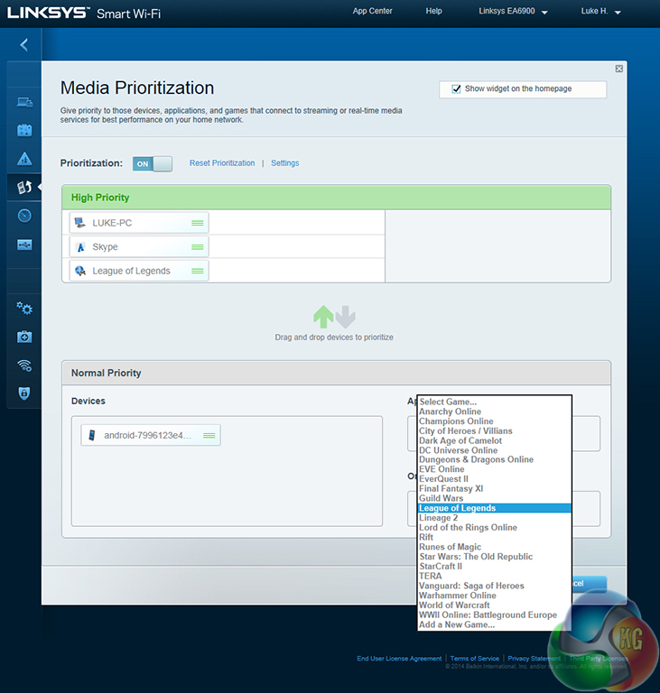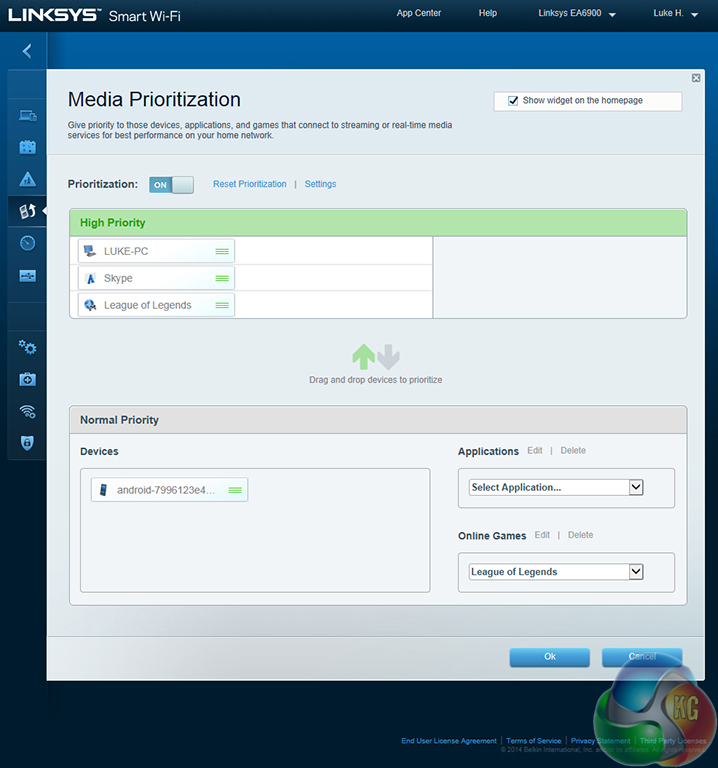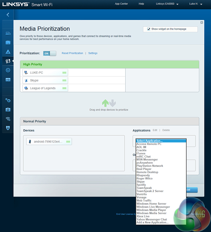 Up to three separate devices or applications can be designated with ‘High Priority' on the network. The box for each devices or application can be dragged to the ‘High Priority' section.