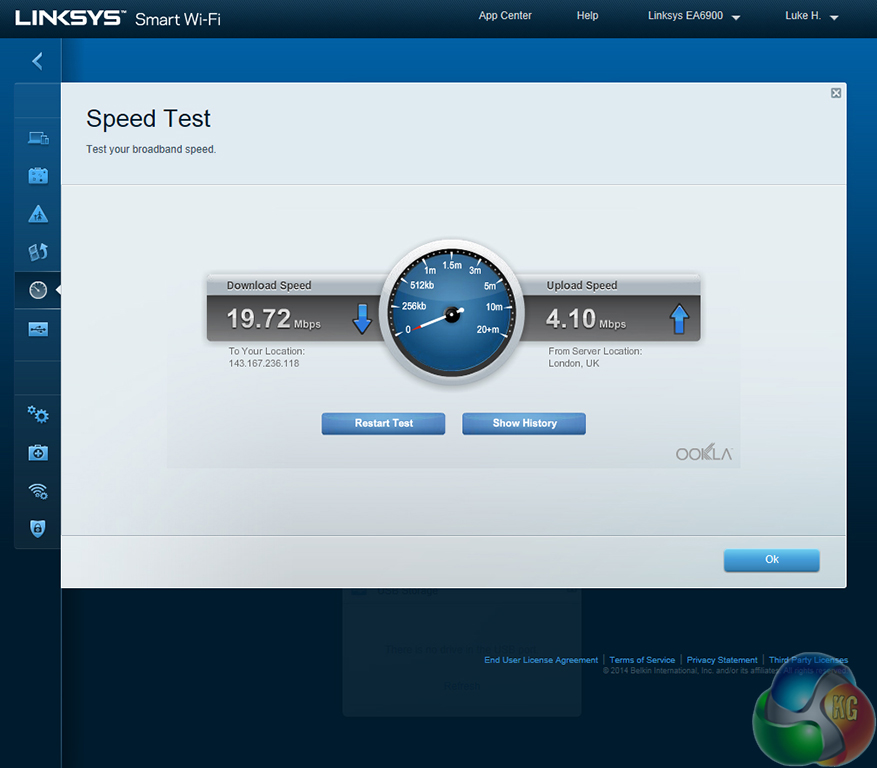 A basic speed testing tool, provided by Ookla (the company behind SpeedTest.net), is built into the Smart Wi-Fi application. The tool also allows users to check a list of their previous results – a feature that could be useful when complaining to internet providers over bandwidth capping or speed reductions.