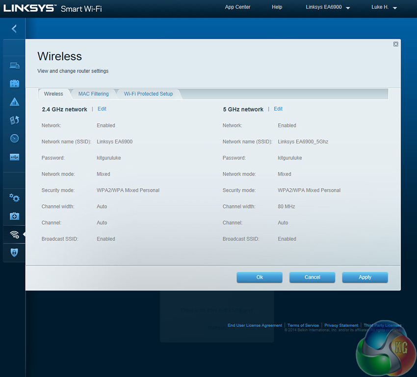 Connectivity is just one of the sections that allows the network's name and password to be changed. Firmware updates can be applied to the router via the connectivity section; Linksys permits for them to be applied in a manual or automatic manner.