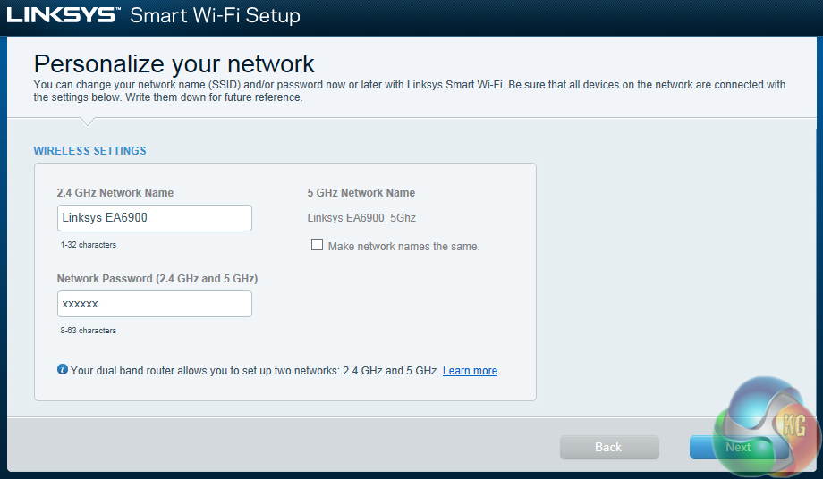 Setup is completed via the Linksys Smart Wi-Fi software approach.