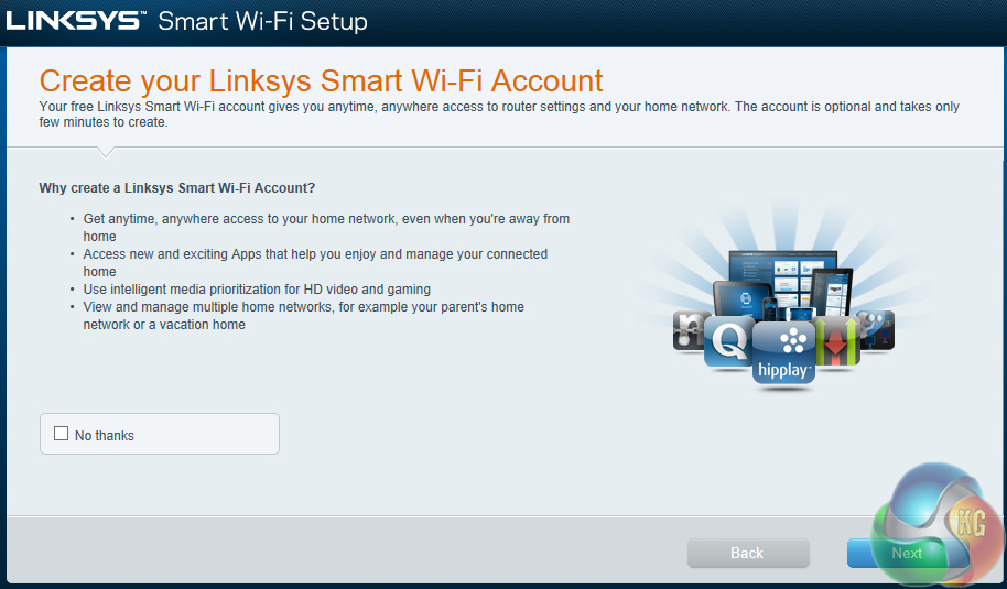 Users are also given the option to create a Linksys Smart Wi-Fi account. One of the headline features for Linksys' Smart Wi-Fi is the ability to control the network via an external device. Network apps are also available.