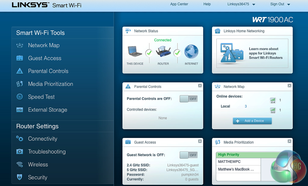 Another useful feature packed in to the WRT 1900AC is media prioritization, allowing you to designate up to three devices as ‘high priority' on the network, you can also set certain applications or online games as high priority.