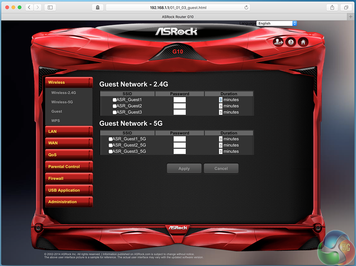 As with most modern routers, when you first connect a LAN cable to the G10 you get a pop-up window asking you to log in with the default username and password for initial configuration.