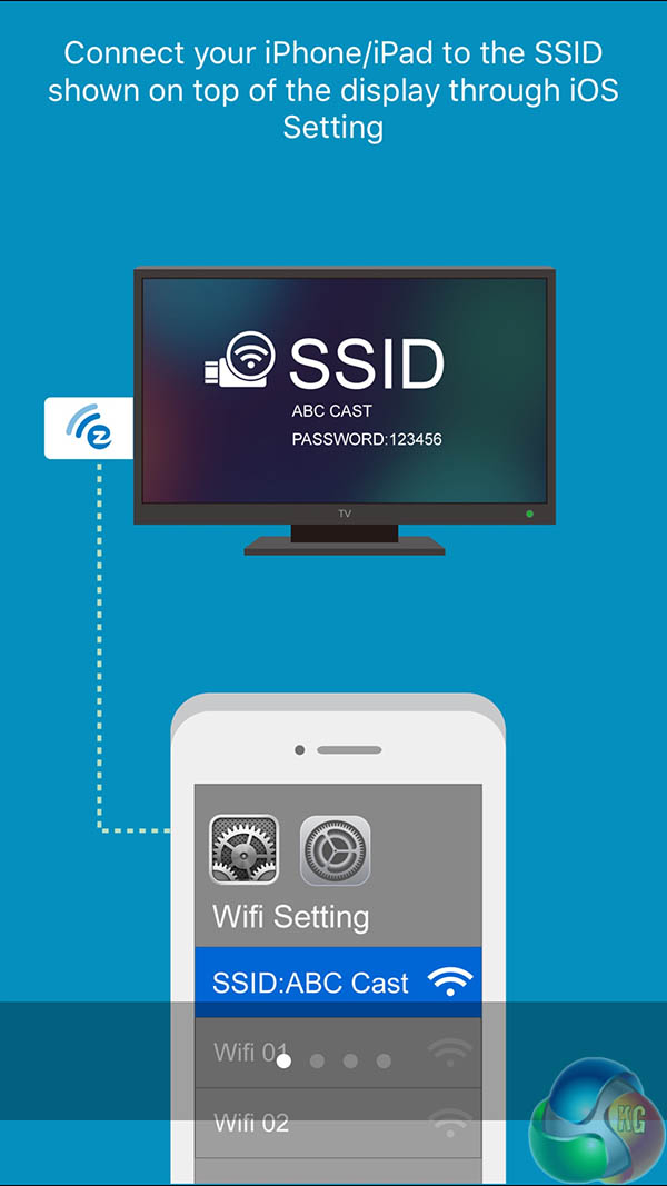 With the app installed on an iPhone, we followed the instructions by downloading the EZCast app and then connecting to the H2R’s built-in SSID displayed on the screen.