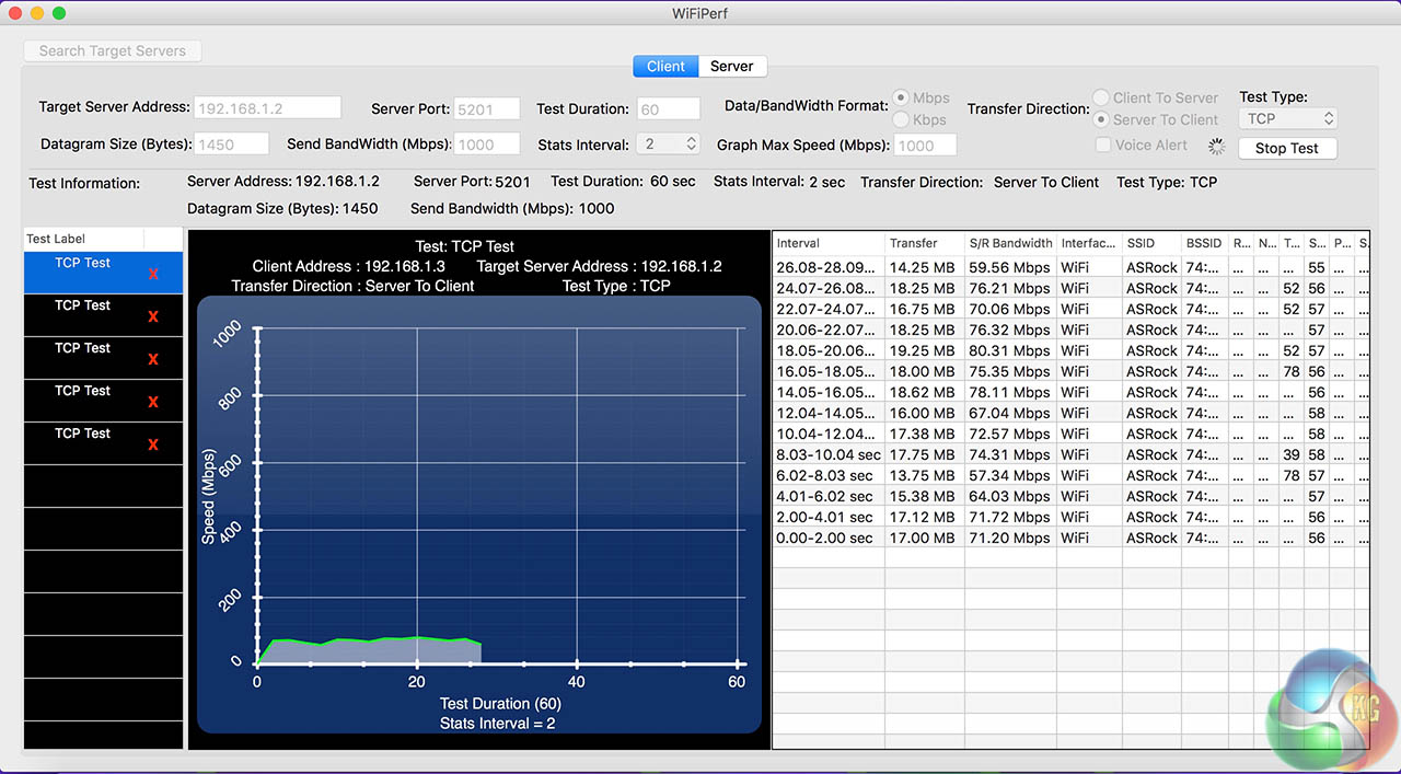 The 802.11ac results here are very good. While a few routers in this same test environment have managed speeds close to 700Mb/sec, the ASRock G10 still does fine, with approximately 600Mb/sec at close range, and around 275-300Mb/sec at long range.