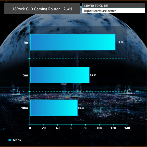 But this is a router review, not a wireless dongle review, and you probably came here to see how fast ASRock’s Gaming G10 Router could go. It’s mostly good results here, with the exception of middling 802.11n 2.4GHz performance.