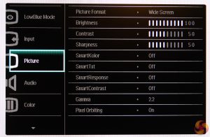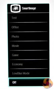 Anyway, pressing left lets you select among a generous range of “SmartImage” presets, although without any descriptions we were left wondering as to the most likely distinction between Office and Text, something we dare the average user to figure out without resorting to the manual.