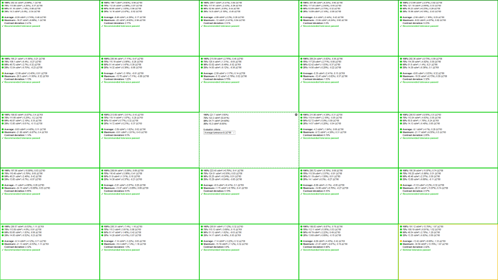 For more detailed and objective evaluation we use an Xrite i1 Display Pro with DisplayCAL and CalMAN Colour Checker software to assess the panel’s contrast performance, uniformity and image quality. Please keep in mind that these results should only be used as a guideline: not only is every panel different to some extent, but a number of other factors can affect measurements such as environment temperature, display warm-up time, etc.