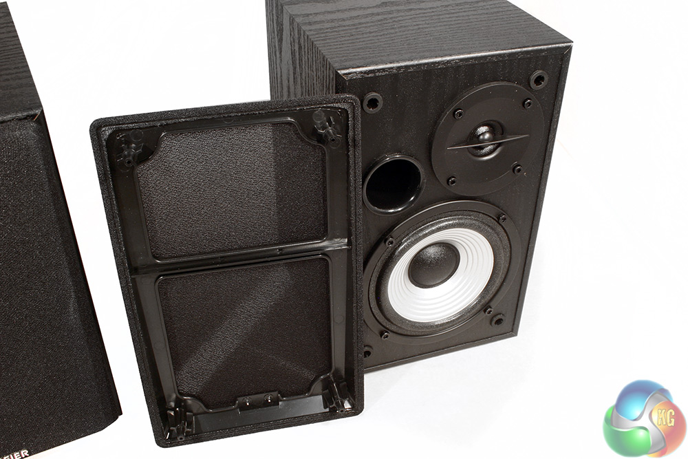 The main body of the speakers is made of MDF, but has a black, wood grain effect along all the main panels, giving it a slightly classier feel.