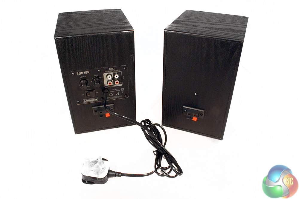 The Edifier 980T speakers themselves are regular looking speakers. They are entirely black, apart from some red highlighted connection points on the rear. The front is dominated by a foam cover that can be removed, though there is a minor style point with the Edifier logo at the base of each speaker.
