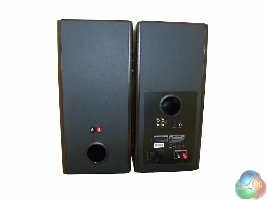 There are a few connections on the back of the speakers: two for pairing up the right speaker to the left and then four to be used for pairing them up to a PC, media player or TV.
