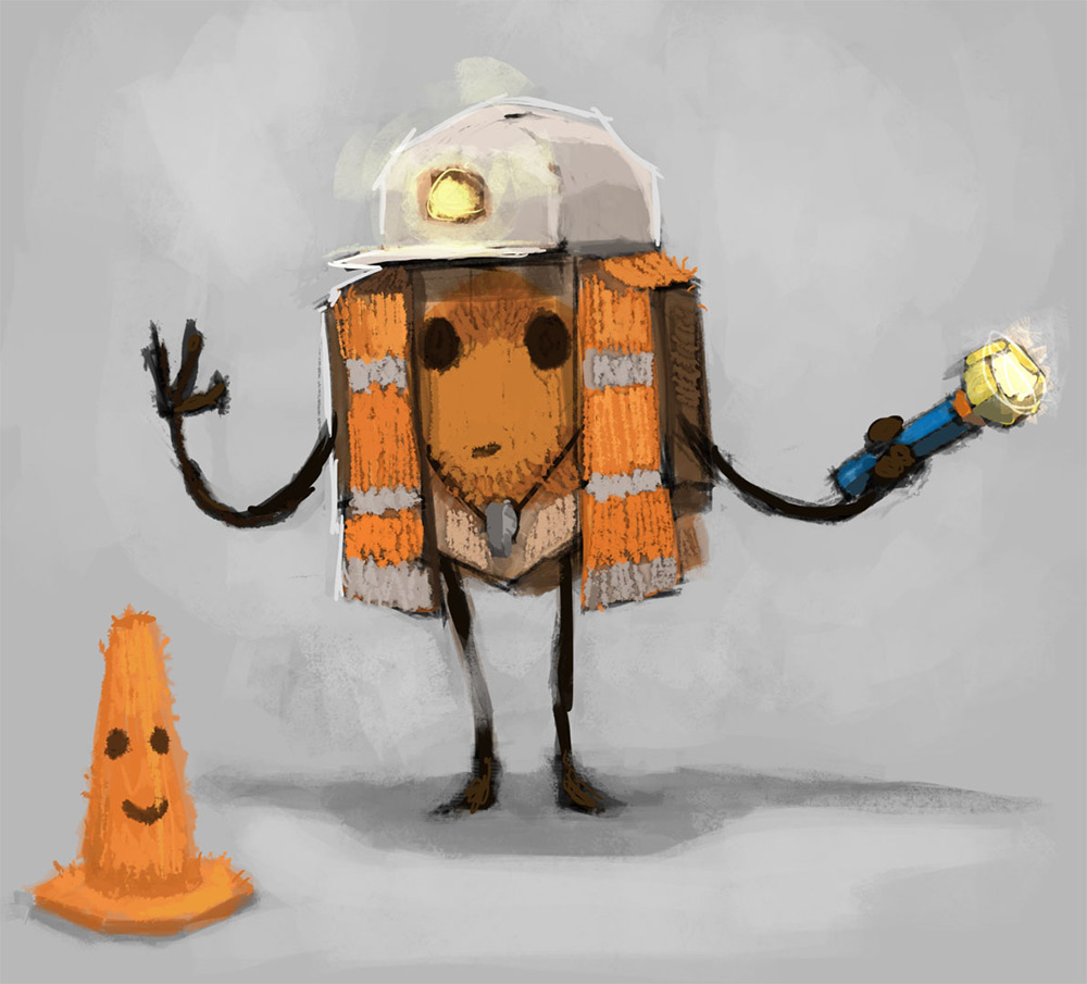 “Sorry for the delay… here's a cute construction robot to say sorry.”