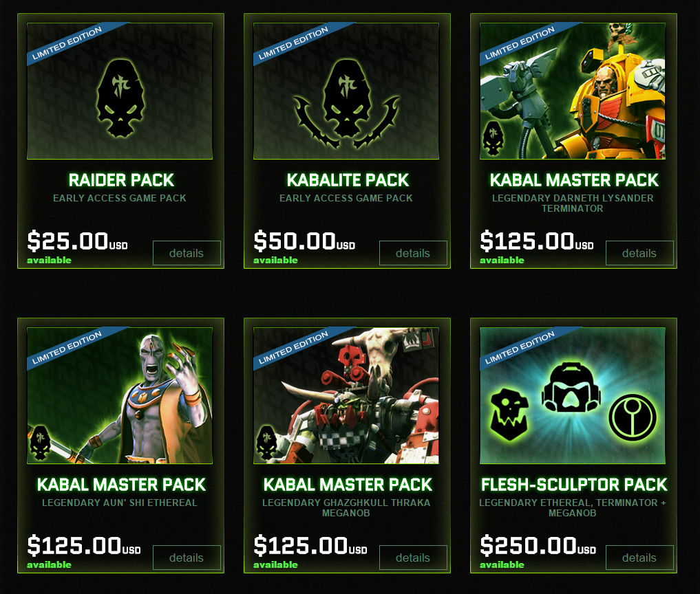 Even though the game won't be available until Q2 of this year though, you can pre-order a bunch of stuff from the store already. For just $250 you can get an early access key, some custom HUDs when the game launches, some forum avatars and portraits, and five limited edition in-game skins. Bargain.