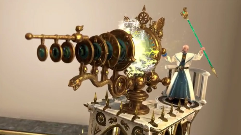 The Warhammer world has a lot of weird and wonderful creatures and contraptions, with giants, griffons, cannons and ball and chain swinging goblins being common place – they're a mad lot in the Old World. Perhaps not as mad as the wizards though, who tread that line between chaos and the light. Like those that play with the Luminark of Hysh, a bizarre machine of war created by the Wizards of the College of Light Magic. Concentrating its power into a single point, it has a devastating magical attack that will decimate the enemies of humanity.