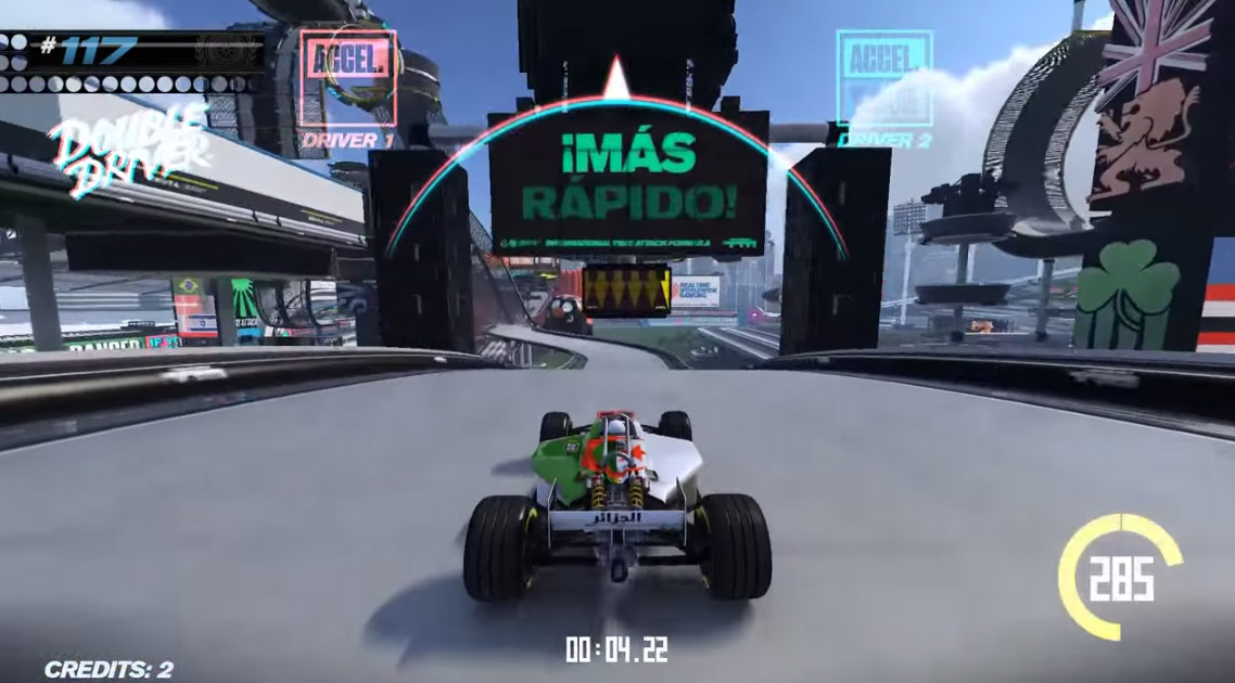 We also got our first look at Double Driver mode, where two players have some input into the vehicle's direction. It looks rather chaotic.