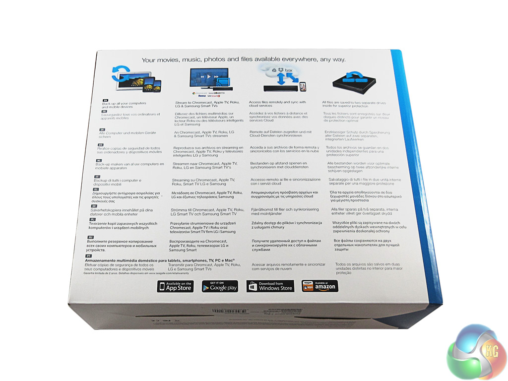 On the back of the box is some key information about how you can use the Personal Cloud, in multiple languages.