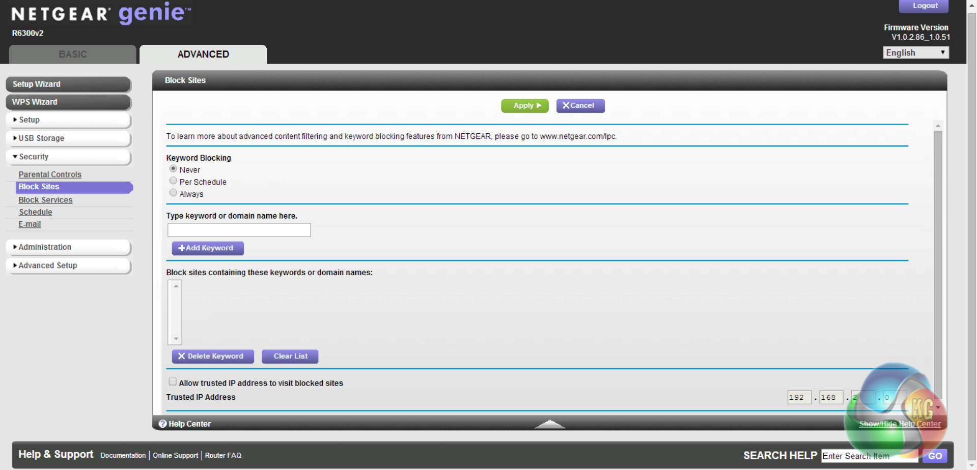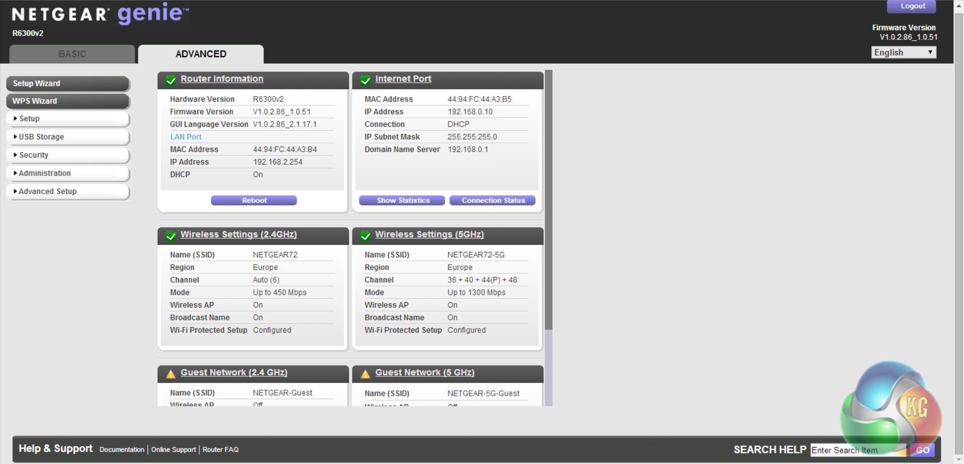 Accessing the Netgear's control panel is simple, just type in the IP address of your router and enter the default username and password, ‘admin' and ‘password'.