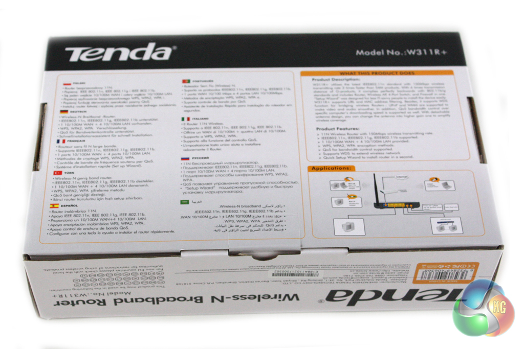 Turning the box over reveals a more detailed breakdown of the features and specifications of the router within. These are repeated in nine different languages. There is also a promotional blurb explaining some of the key features of the router. The box itself feels fairly good quality and should provide a decent level of protection during transit.