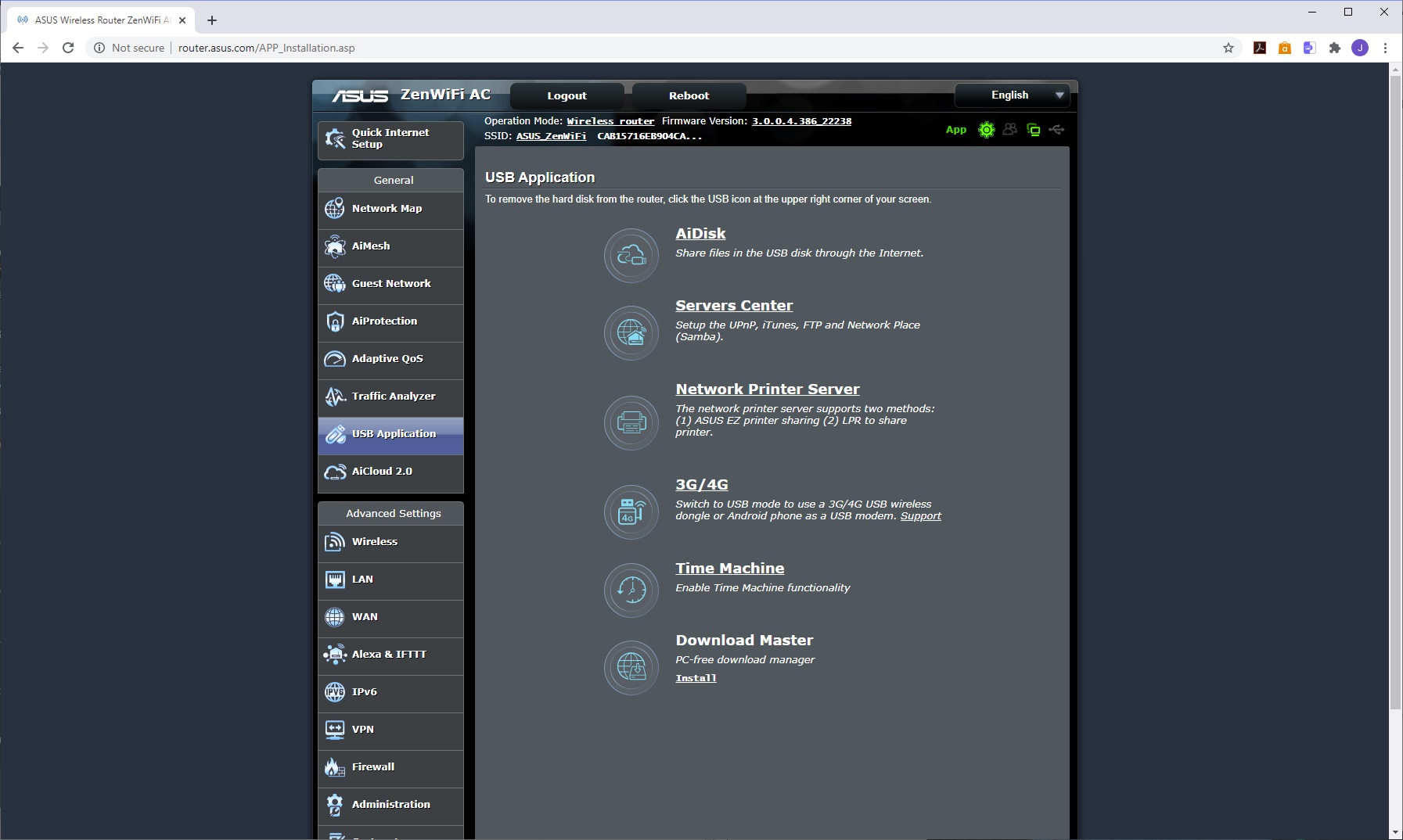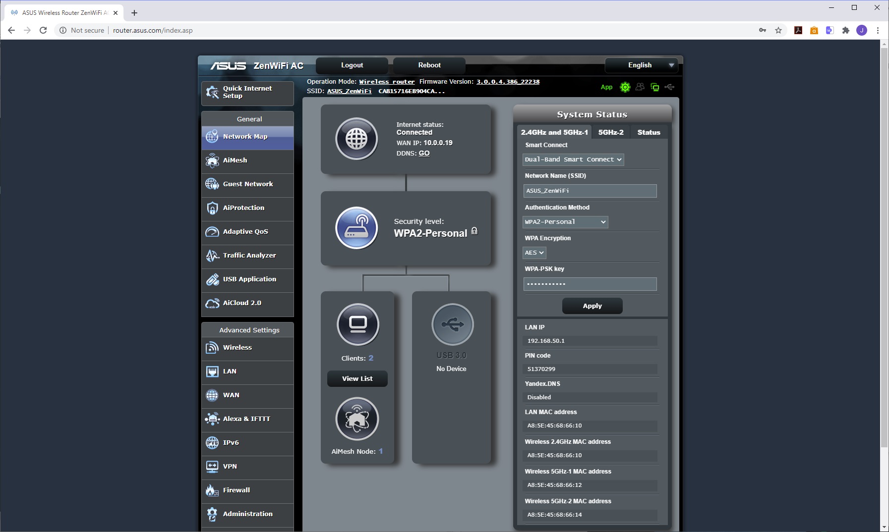 There is, of course, also a standard Web interface and this is the familiar feature-rich administration system we have come to enjoy from ASUS. The default view shows a network map of the devices attached including USB, and quick options to update the WiFi.