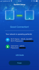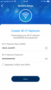 The smartphone app will ask you which ASUS router type you are wanting to set up, then find your ZenWiFi unit via Bluetooth and log you into its WiFi. The process is then a seamless one of following the wizard to add WiFi name and password, as well as admin login credentials. You're then logged into your new SSID, and after an optimisation process your ZenWiFi is ready.