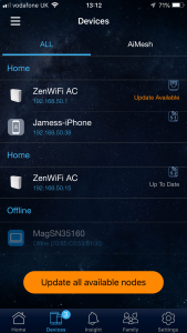Once they are turned on and the one you've chosen to be the router is connected physically to your broadband via its WAN port, you turn on Bluetooth on your smartphone and fire up the ASUS Router App.