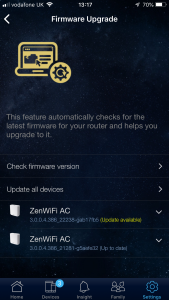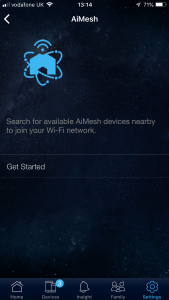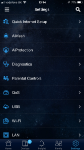 The Settings section provides much more fine tuning than other smartphone apps we've used. You can set up the Internet connection again, add further units to the AiMesh WiFi, enable the AiProtection firewall, and run a few diagnostics, including a security scan.