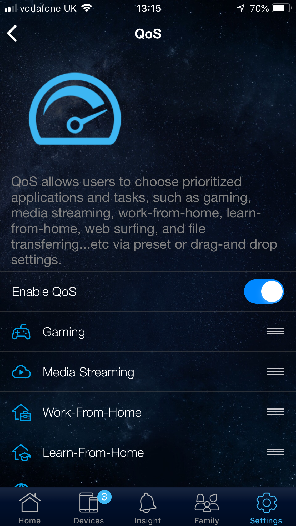 There's a global parental control option, quality of service (QoS) that allows you to prioritise traffic by category, such as gaming and media streaming. You can limit bandwidth for various categories of network user, and set up how network users can access what is attached to the USB port.