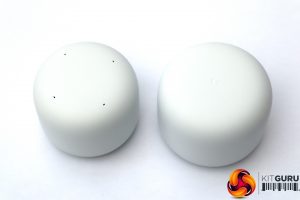 The two Google Nest Wifi units look very similar. The router has a Google “G” on the top and the satellite doesn't, whilst the latter has a speaker grille on the bottom plus four field microphone holes on the top.