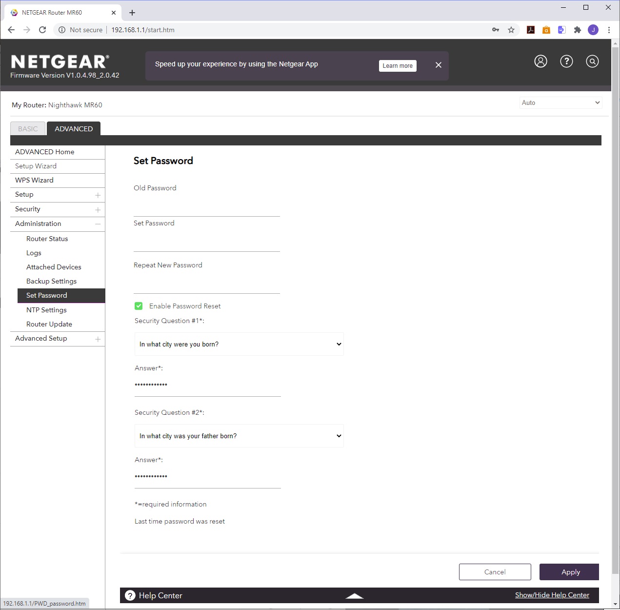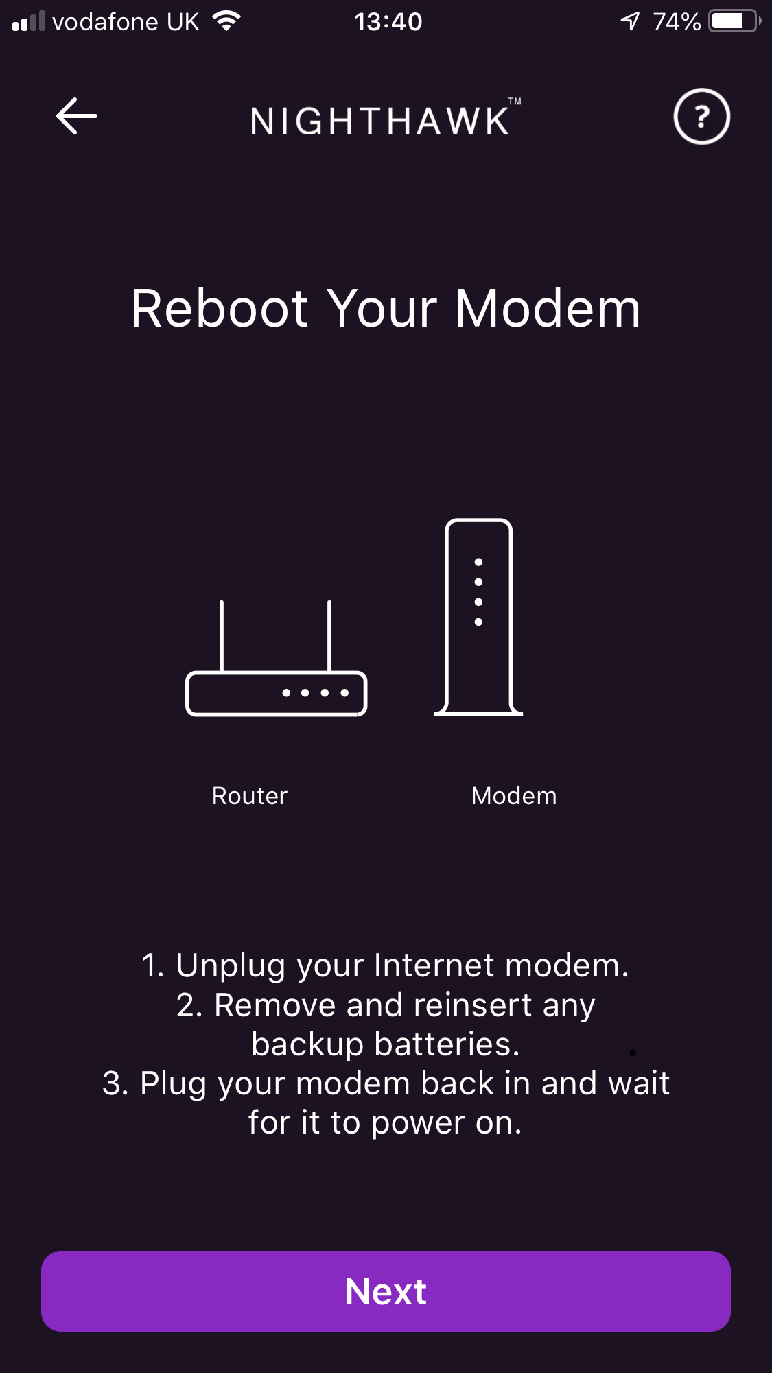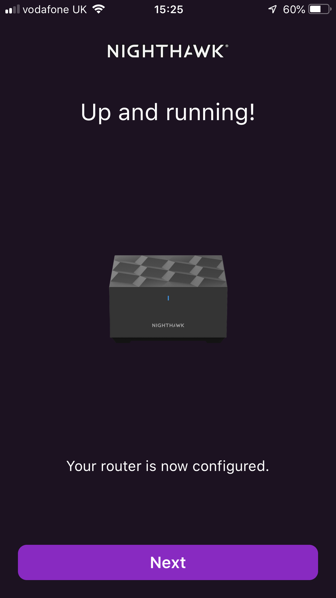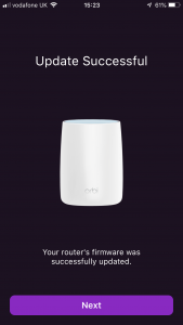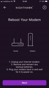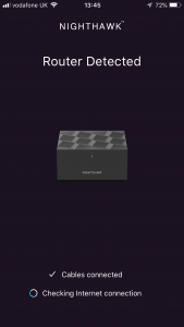 The process then asks you to reboot the modem and connect it to the Nighthawk Router, as well as positioning the two satellites. The setup will detect these automatically, ask you to set up an admin password, configure Touch ID if your phone has this, plus some fail-safe security questions. Finally, it will update the router and satellite firmware, if necessary, before rebooting, after which you're up and running.