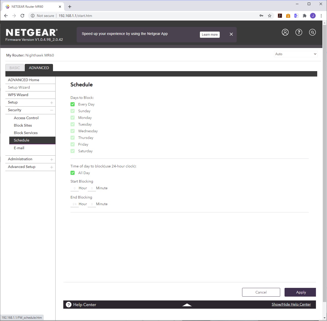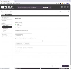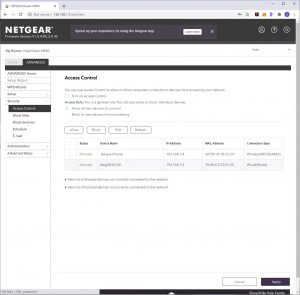 Under Security, you can allow or block individual devices on the network. You can also block websites via keyword or domain name, as well as whitelisting a trusted local IP address that can bypass this. You can also block services via a schedule – for example, stopping Minecraft ports when your kids should be in bed. You can also schedule access to broadband in general via time and day of week. Finally, you can set up an email address to receive security notifications.