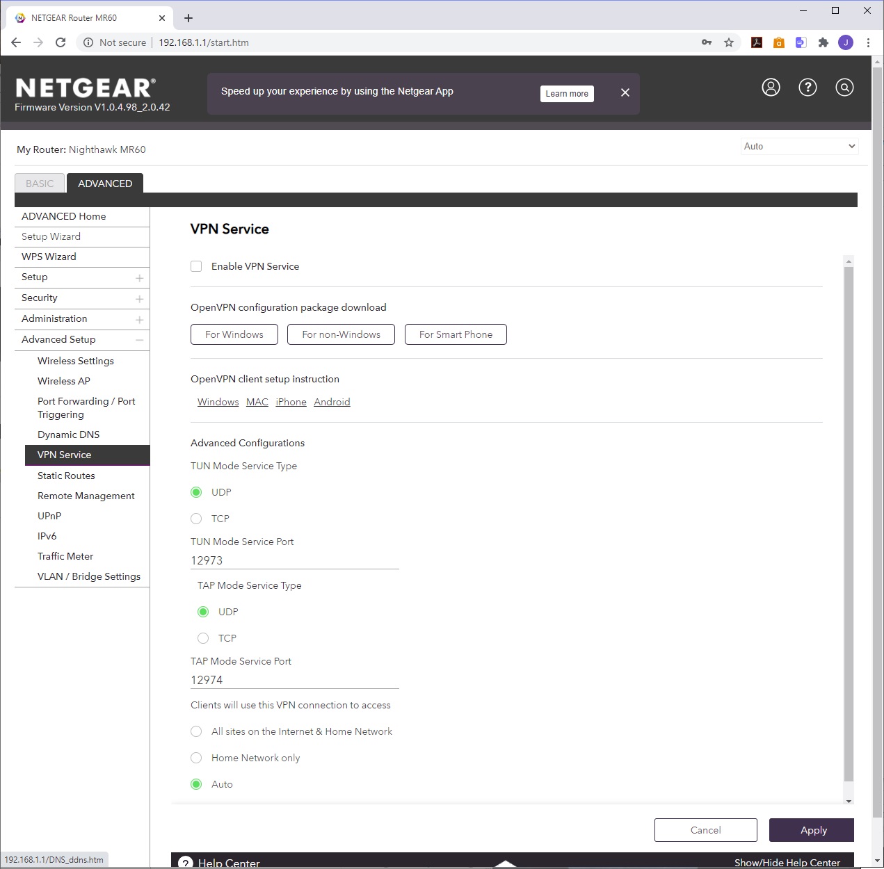 There are many more detailed adjustments available under Advanced Setup. You can fine tune your wireless radio signal, including CTS/RTS Threshold. You can switch the router to AP mode, if it's piggybacking on top of another router. You can set up port forwarding and triggering to provide services from machines on the internal network to the Internet. You can make use of a Dynamic DNS service, with NETGEAR's own, DynDNS and NoIP supported. You can set the router up as a VPN server, although only OpenVPN is supported.