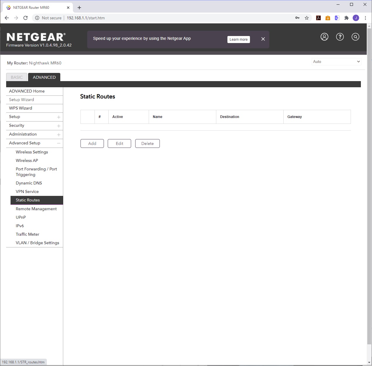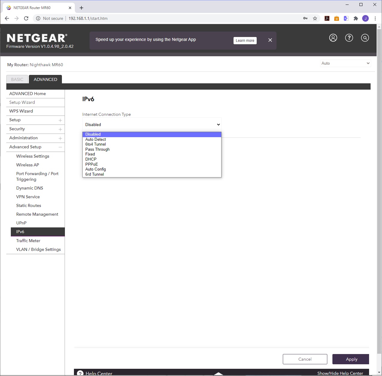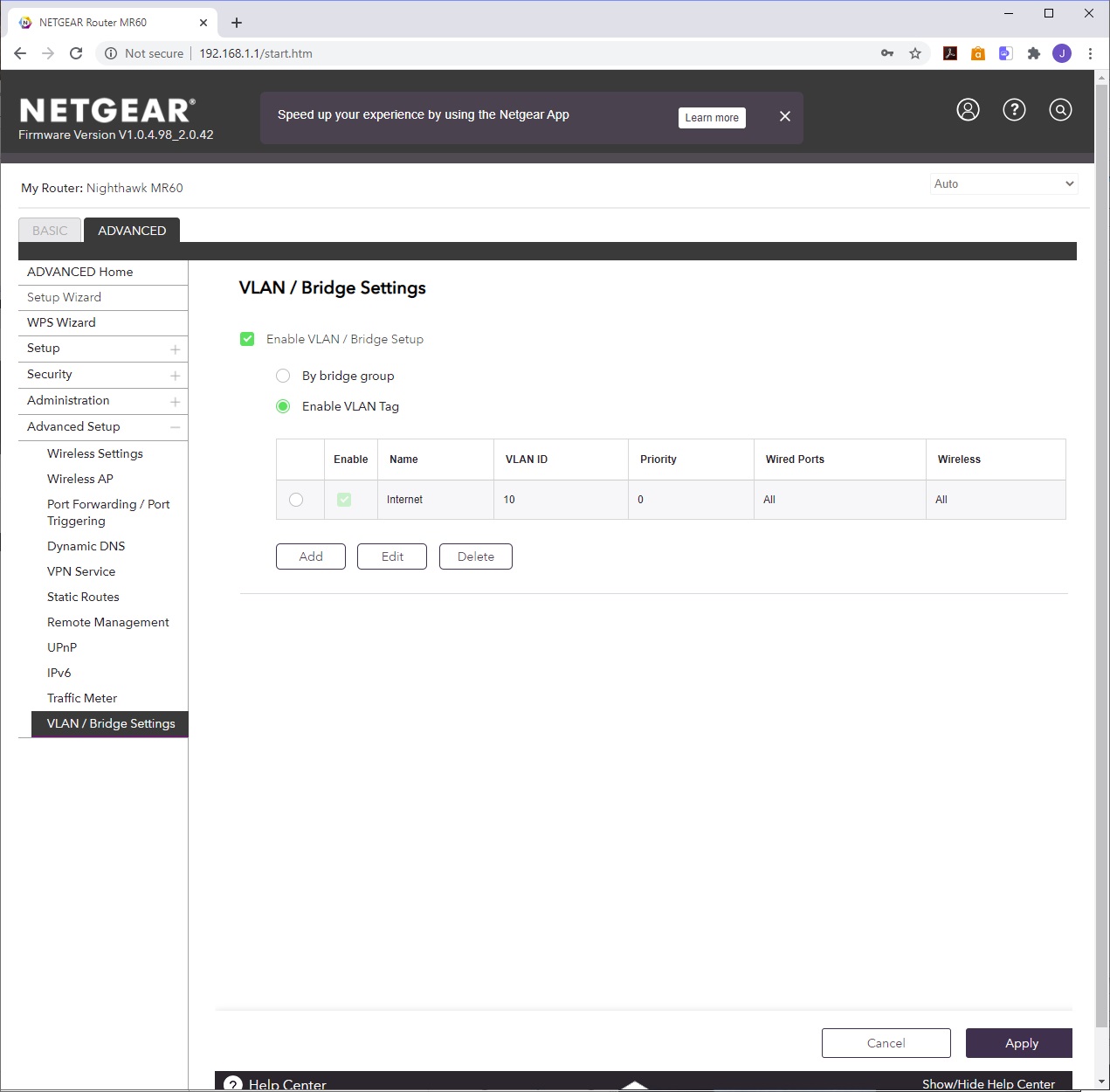 It's possible to add static routes, and turn on remote management access to the router from the Internet. UPnP is enabled by default, but IPv6 isn't, although there's comprehensive support for different flavours of the latter. The traffic meter we saw in the smartphone app can be found here as well, and finally a VLAN or Bridge can be configured.