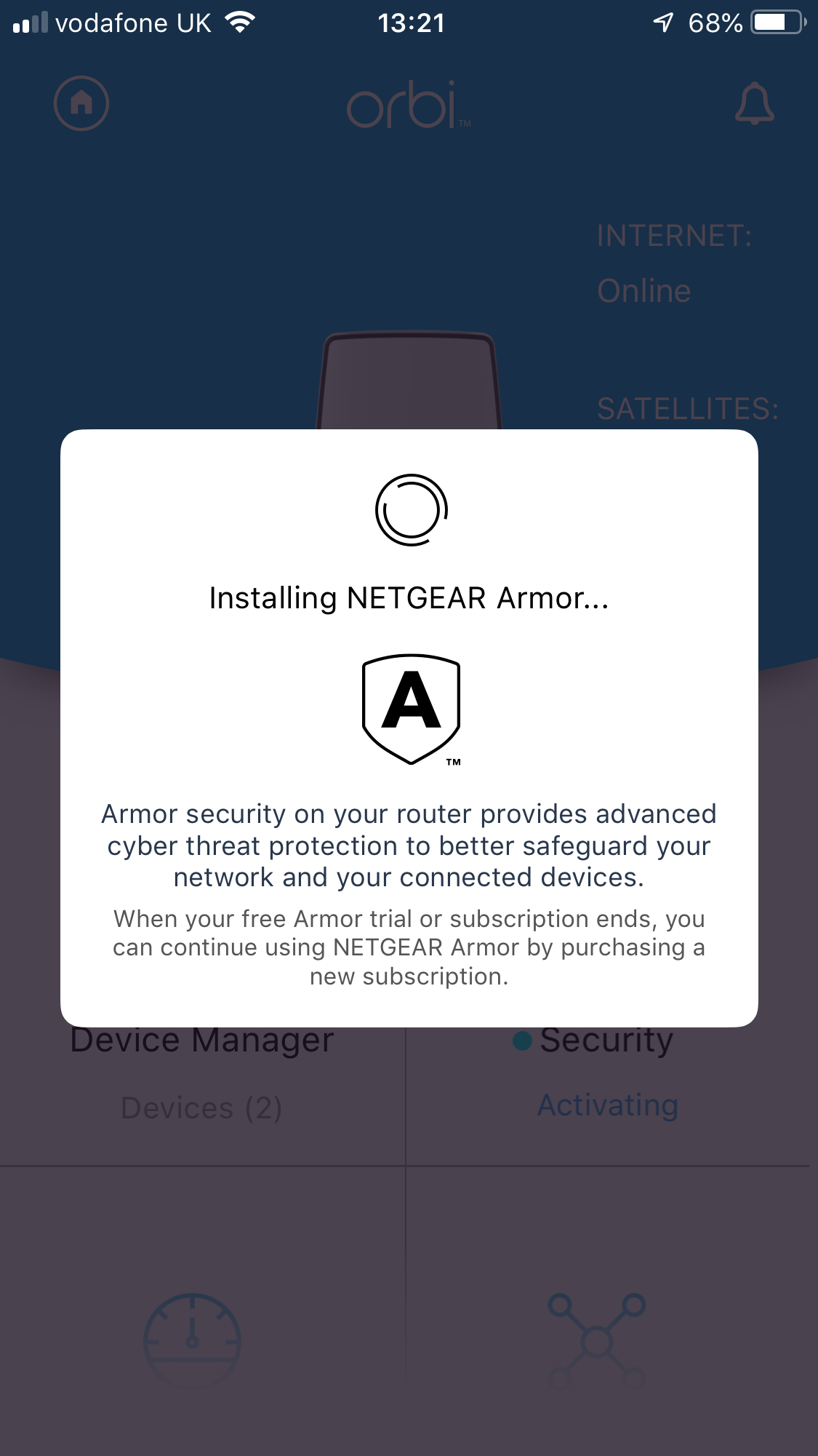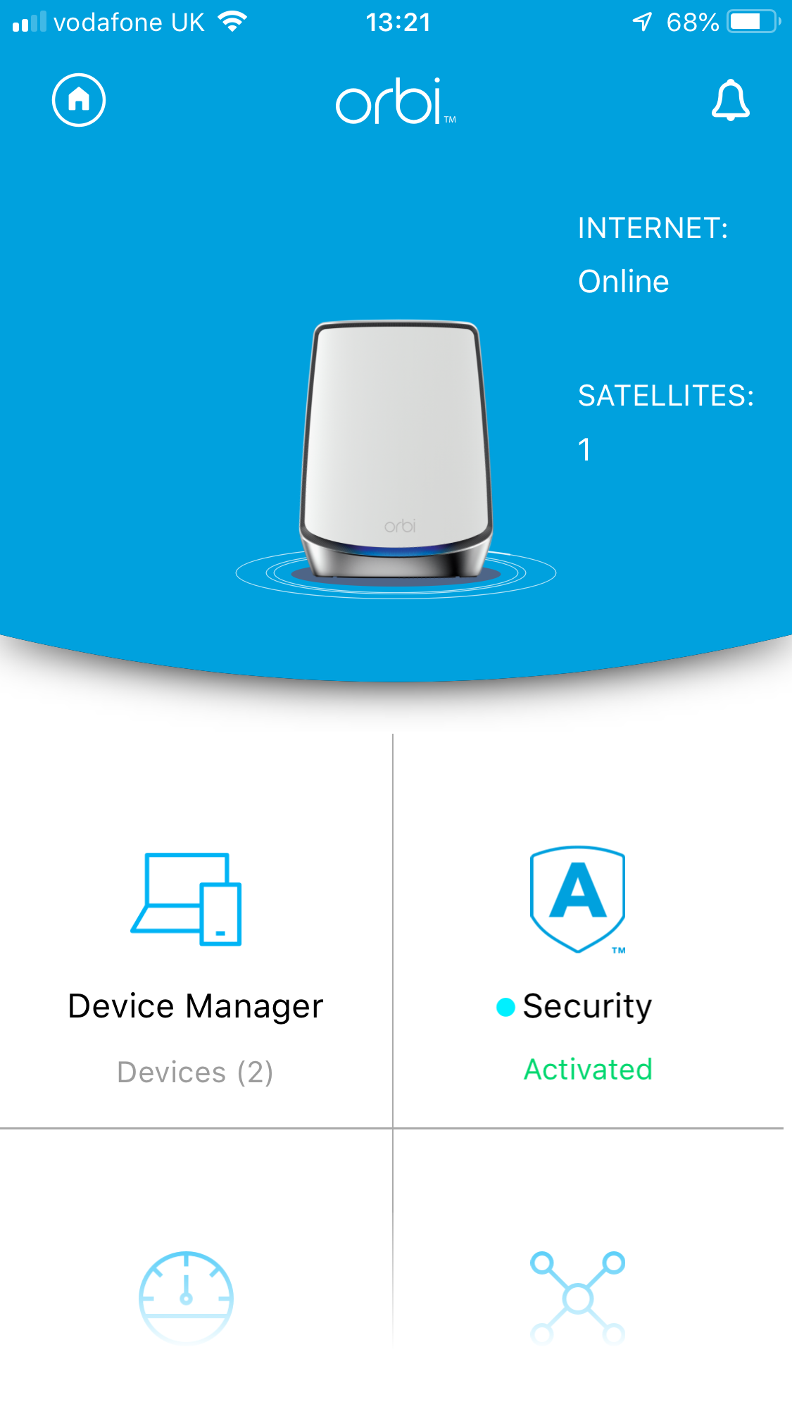 You can then log into the Orbi software and the first time it will install NETGEAR's Armor protection system, before taking you to the main interface. Here you can peruse the devices connected to the network, check out the NETGEAR Armor security status, and perform a broadband bandwidth test. You can also check the network structure – handy if you have more than one satellite – and change the WiFi settings. You can enable a guest network, enable throughput metering, and access help.