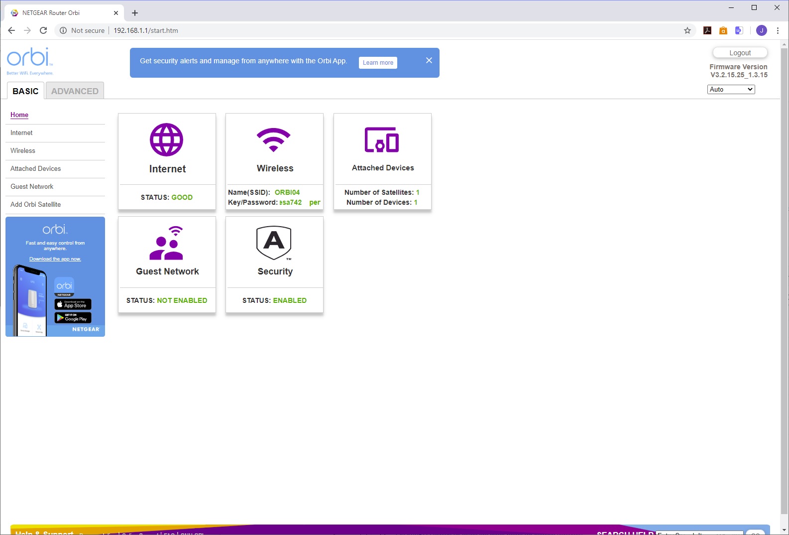 Although you can access the main features via the smartphone app, there's still a lot more available via the Web interface. This has two main areas – Basic and Advanced. In the Basic section, you can see an overview of the router status, configure the broadband Internet connection and WiFi, and get a listing of connected devices. It's also possible to set up a guest network – handy for keeping your main WLAN's credentials safe by only allowing certain people to have them. There's also a wizard for adding an additional satellite. The Internet Setup lets you turn on aggregation of the 2.5Gbits/sec port and the adjacent Gigabit Ethernet port.
