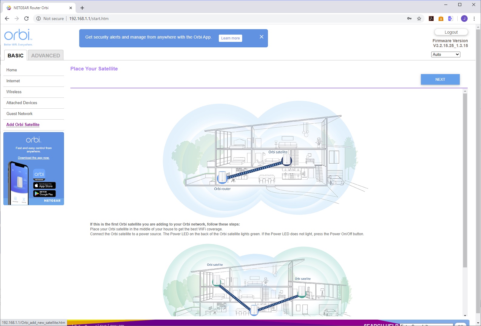 Since the Orbi units are pre-paired, you can just plug them in and turn them on. But unlike the first Orbi system we tested, you're guided to use the smartphone app rather than a desktop browser for setup.