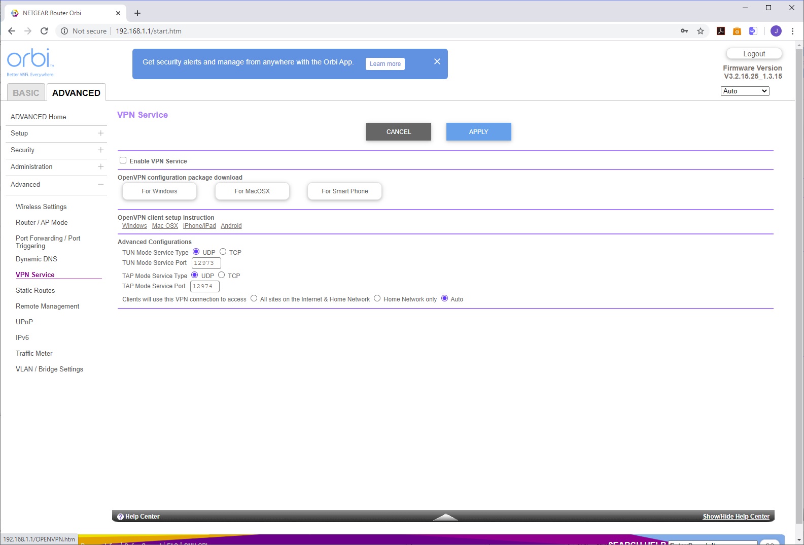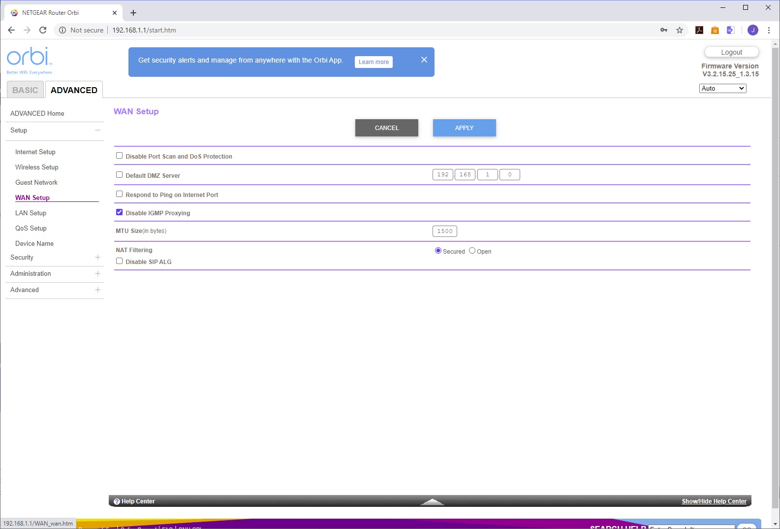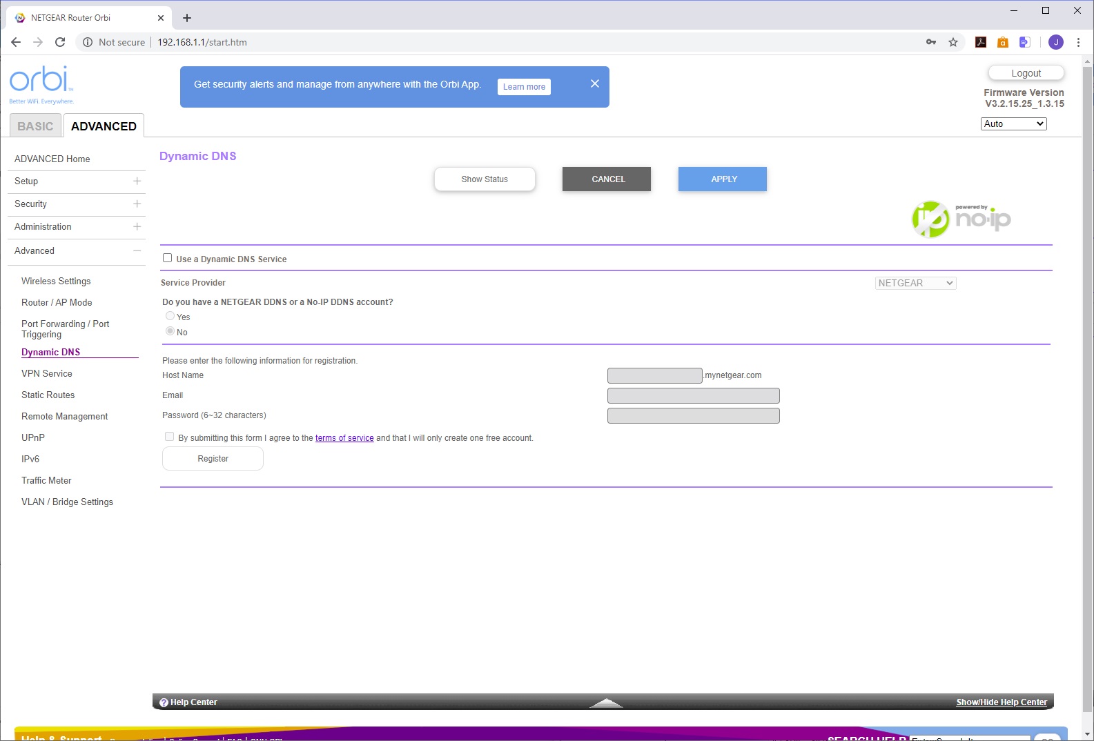 Finally, in the Advanced section of the Advanced tab, you get even more specialist settings for the WiFi, such as enabling 20/40MHz coexistence in the 2.4GHz band, and WMM (Wi-Fi Multimedia) for 5GHz. You can switch the Orbi between router and AP mode. The usual port forwarding options are available so you can allow a specific port on an internal system to be externally accessible, such as a game server. You can set up dynamic DNS with NETGEAR's own system, No-IP or Dyn.