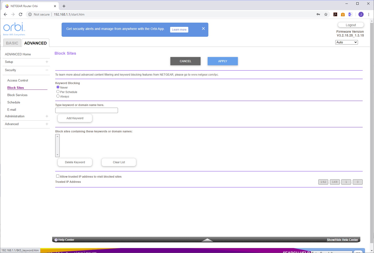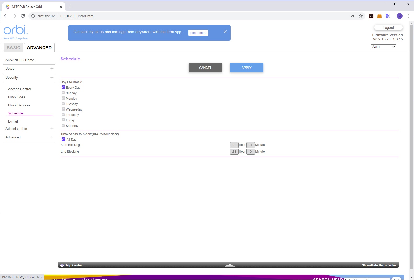 The Security section lets you control access via the router for individual devices. You can block sites by keyword, which also has the ability to schedule so that these sites are available only at particular times, or from trusted IP addresses. Similarly, you can block services via port range either all the time or according to a schedule. You can also define a schedule for the Internet to be accessible on a permanent basis or only on specific days. There's an email notification system, too.