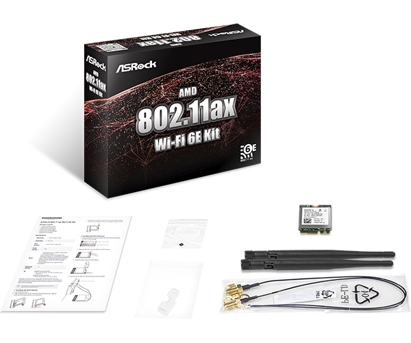 These upgrade kits consist of an M.2 (2230) NIC, two antennas, two SMA Wi-Fi antenna cables, and a plastic cover for the module. The interface type changes depending on whether the kit is for AMD or Intel boards. While AMD's kit uses a PCIe interface, the NIC for the Intel boards uses CNVio2. Every other specification is the same.